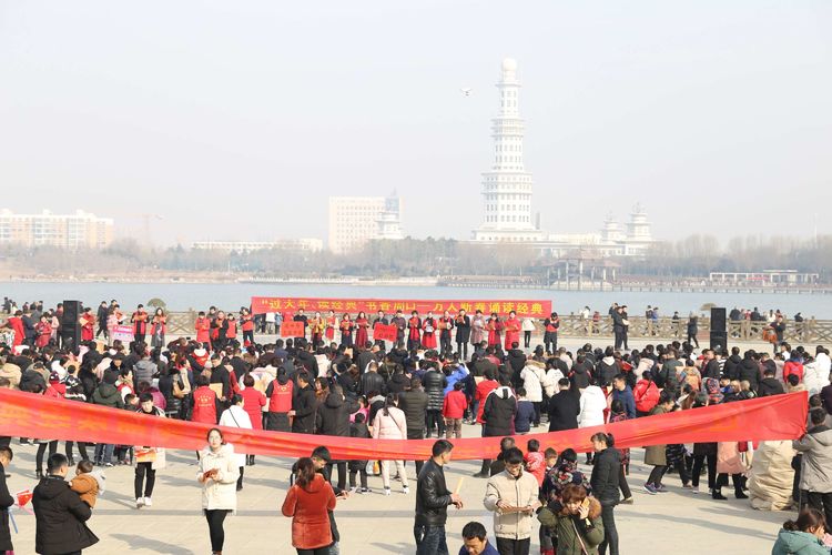 大年初一,由市委宣传部,团市委等主办的“过大年,读经典”新春涌读经典活动在周口东新区周口公园内举行,十几所学校,上千名师生参加了诵读活动。很多游园的群众也纷纷加入其中。