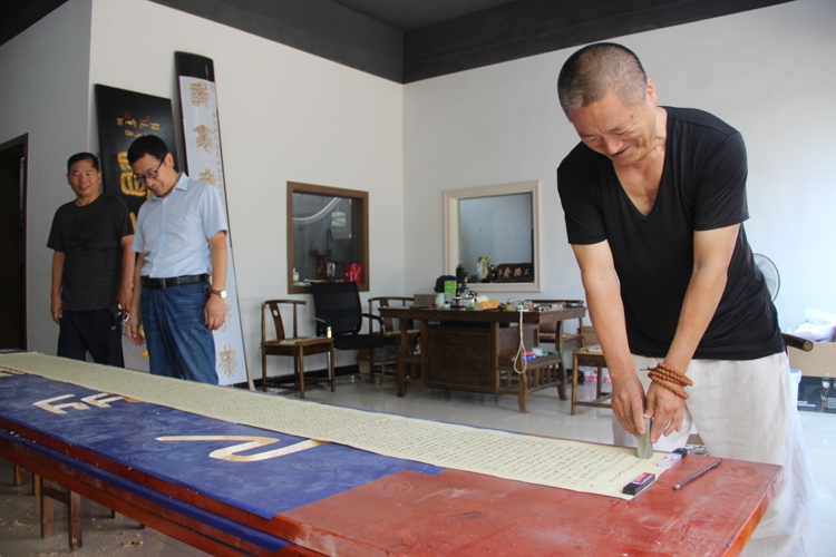7月28日,周口著名作家朱广辉在朋友的见证下,用近四个小时,将近4000字的毛泽东经典之作《心之力》誊抄一遍。纵观其书,笔法清秀俊逸,气势磅礡,通览全文一气呵成,笔力逎劲,章法巧妙,尽显其书法功底。目前,该作品已被“健之泉”饮用水集团收藏,将在国庆节前后展出,为祖国70华诞献礼。