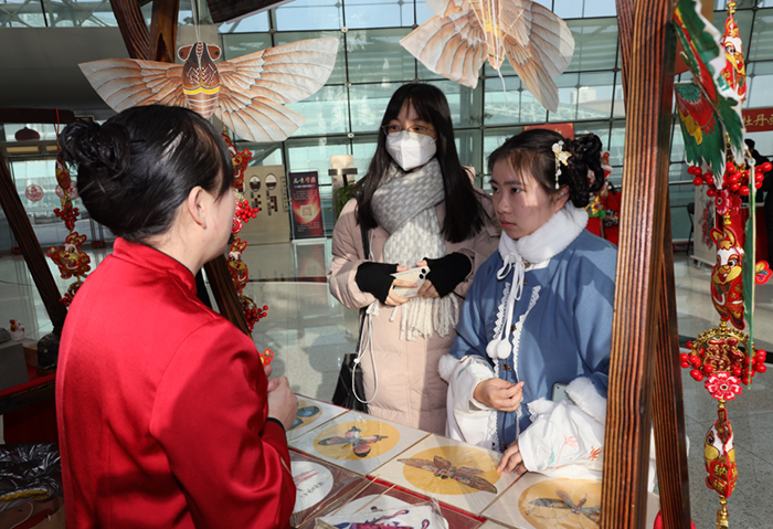 互动展演区由国家级、省级非遗传承人开封木版年画代表性传承人任鹤林、开封汴绣传承人程曼萍、宋室风筝传承人宋长虹、剪纸传承人畅杨杨等8人现场展演汴绣、年画、剪纸等非遗项目,努力为庆祝二十大、喜迎新春佳节营造良好的社会氛围。